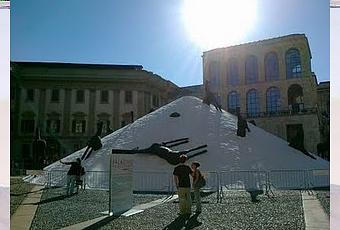 Sembra di essere alle saline di Margherita di Savoia... e invece siamo a Milano. Tra il Duomo e Palazzo Reale, per la precisione. E siamo davanti all'installazione di Mimmo Paladino "La città che sale". Un'opera d'impatto che colpisce per la posizione, per l'imponenza e per lo straniamento che provoca inserita in un contesto come quello del centro milanese. Merita uno scatto.E merita un plauso anche la società del Milan che pagherà i danni provocati da alcuni tifosi imbecilli.