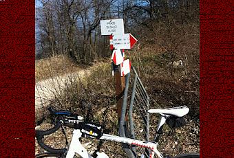Si, ok, ma io ho da scalare una montagna, poche pippe, e fate largo! Questa apparentemente e' piu' facile, nel senso che i chilometri sono ben segnati (al Prato sono 9), e dovrebbero dare un senso di tranquillita'. I primi 2 e mezzo li macino bene. Per forza, la pendenza del 7,7 adesso sembra pianura, con quello che ho fatto finora... Poi un tornante e sono dolori: prima 8,4 per mezzo chilometro poi tutto uno ad oltre il 10%... Barcollo ma non mollo.9,6%, 9,2% ed una altro mezzo a 9,6%.. Le gambe urlano, il fiatone e' grosso ma sono sempre li. Al massimo zigzago. Mi alzo sui pedali, sono quasi in equilibrio. La cadenza e' sotto le 40 rpm, ma procedo, un metro alla volta. Traffico, zero, per fortuna. Infine l'ultimo chilometro e mezzo al 7 e mezzo, sembra discesa, azzardo il padellone! Prato di Calci, ancora.