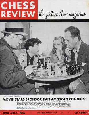 Cinquantaquattro anni fa spariva per sempre Humphrey Bogart, l'uomo considerato il più grande attore americano di tutti i tempi. Beh, non c'è molto da dire, non staremo certo qui a linkare estratti da film stra-conosciuti come Casablanca, Sabrina o Il Mistero del Falco, giammai! Giacché abbiamo stabilito un particolare legame empatico con la categoria degli scacchisti, oggi vi narreremo un fatto su Bogart che pochi sanno (solo quelli che hanno letto la sua pagina di wikipedia) e a meno importa: anche lui era uno scacchista, di quelli forti, di livello master. Giocava quasi quotidianamente, specialmente durante le riprese dei film: le scene di Casablanca in cui gioca a scacchi furono inserite dietro sua insistenza. In giro ho trovato nientemeno che il resoconto (o come si chama) di una partita fra Bogart e la moglie, la superfiga attrice Lauren Bacall. Giocò anche una partita contro George Koltanowski, una specie di mostro disumano che giocava bendato fino a 56 partite (record mondiale) in simultanea, senza perderne nemmeno una (pattando, al limite). Bogart perse contro di lui, ovviamente. Gran soggetto, questo Koltanowski. Ne parleremo più a fondo quando sarà il momento.