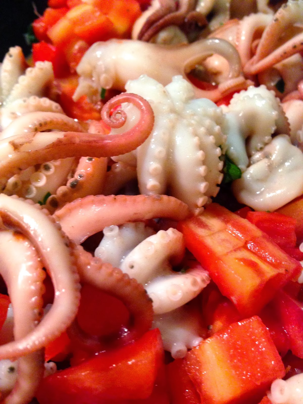 Ho comprato dei moscardini dal gusto sicuro, accompagnato da un un sughetto che se fosse avanzato avrebbe condito un'anonima pasta rendendola un piatto unico..ma di avanzato non è rimasto niente.