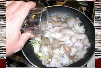 Riscaldare l’olio con il peperoncino e l’aglio, facendolo brevemente soffriggere. Unire i moscardini, puliti e lavati in precedenza. Aggiungere il vino o farlo evaporare a fuoco moderato. Aggiustare di sale e servire.