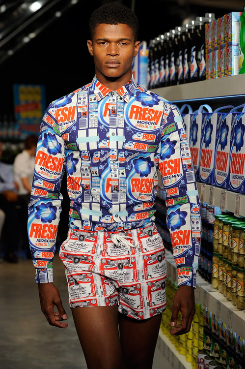 Decisamente pop e ironica l'ultima sfilata maschile firmata Moschino, per la prossima estate 2013.