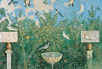 Nell’ultima sezione (Il verde reale e il verde dipinto) sono radunati spettacolari esemplari di pittura illusionistica di giardini che specialmente nel I secolo d.C. decoravano le domus romane, per decorarle e per amplificarne gli spazi.