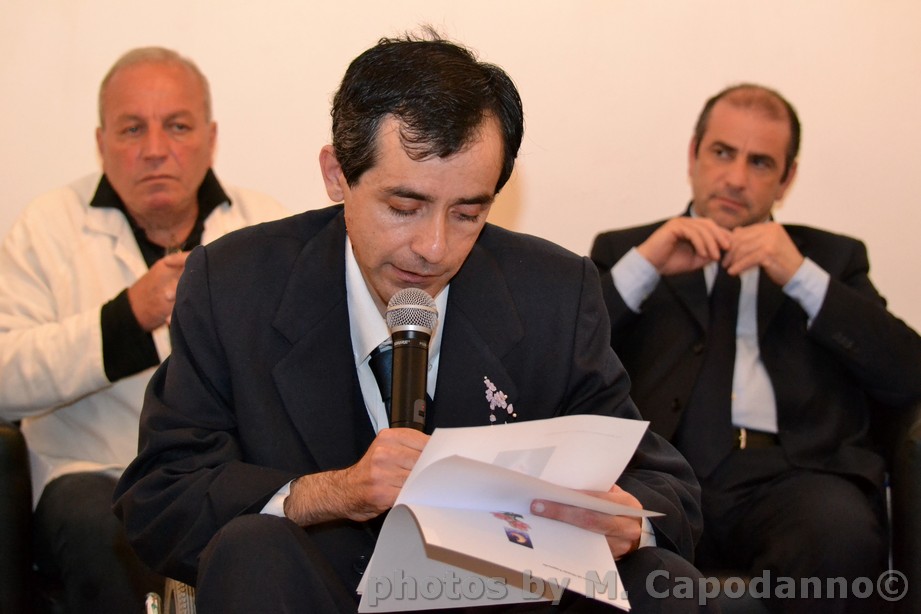 Michele Pappacoda (Amalfi) legge " la disperazione è seduta su una panchina", dietro il presidente di Posidonia Vito Casola e il sindaco di Positano Michele De Lucia