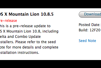 Da poco Apple ha inviato agli sviluppatori la nuova build dio OS X Mountain Lion 10.8.5 per la precisione la versione 12F20.