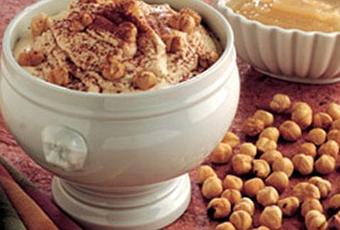 - Versate la mousse in una capace zuppiera, cospargetela con una spolveratina di cacao, guarnitela con nocciole tostate e servitela con la salsa di pere a parte.