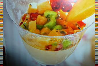 questa mousse al cioccolato è ancor più buona e bella perché servita con macedonia di frutti tropicali è particolarmente adatta alle feste ma ottima in ogni occasione