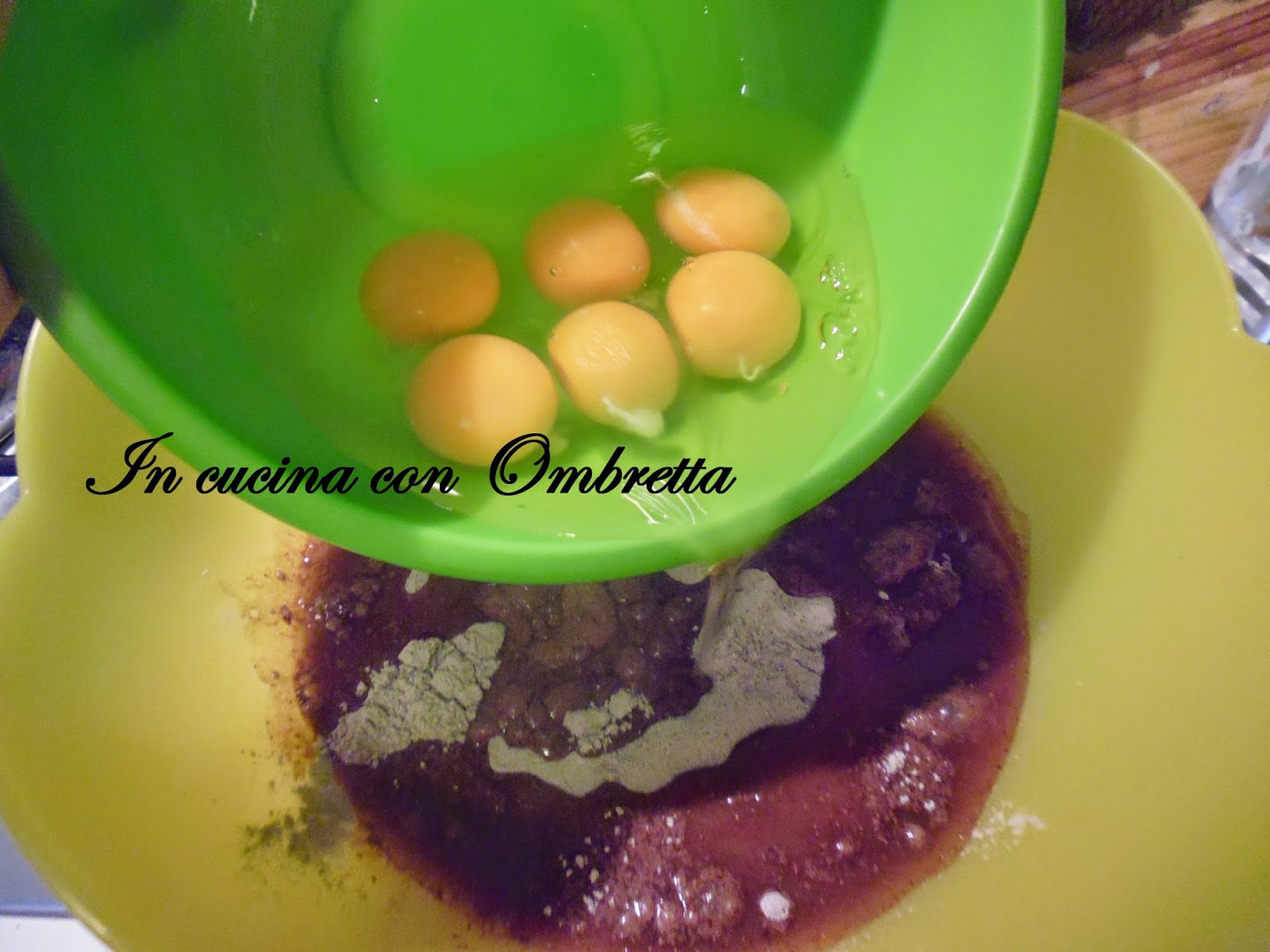 unite anche le uova intere all'impasto, amalgamate bene gli ingredienti con un frullino elettrico.
