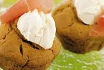 - Lasciare intiepidire i muffins e servirli con un ciuffetto di Philadelphia e 8 fettine di prosciutto crudo.