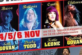 Dal più grande Centro per la Produzione e la Didattica Musicale a Bologna, prende vita la più importante Masterclass del 2015. Music Academy, che da quasi un anno ha trasferito la propria sede nei nuovi locali in via dell’Idraulico 1, presso ZR Music Factory, ha il piacere di presentare 5 artisti di fama internazionale: il chitarrista GUTHRIE GOVAN affiancherà KATIE LEONE (Incognito, Robert Plant, Lou Reed) alla voce e SETH GOVAN (The Aristocrats, Asia) al basso, e DARBY TODD (Gary Moore, Darkness) alla batteria. Il Live di TONY MACALPINE TRIO, il 7 novembre, concluderà l’evento.