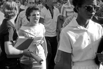 Elizabeth Eckford mentre entra in classe.. mista, 1957 +Little Rock.Arkansas