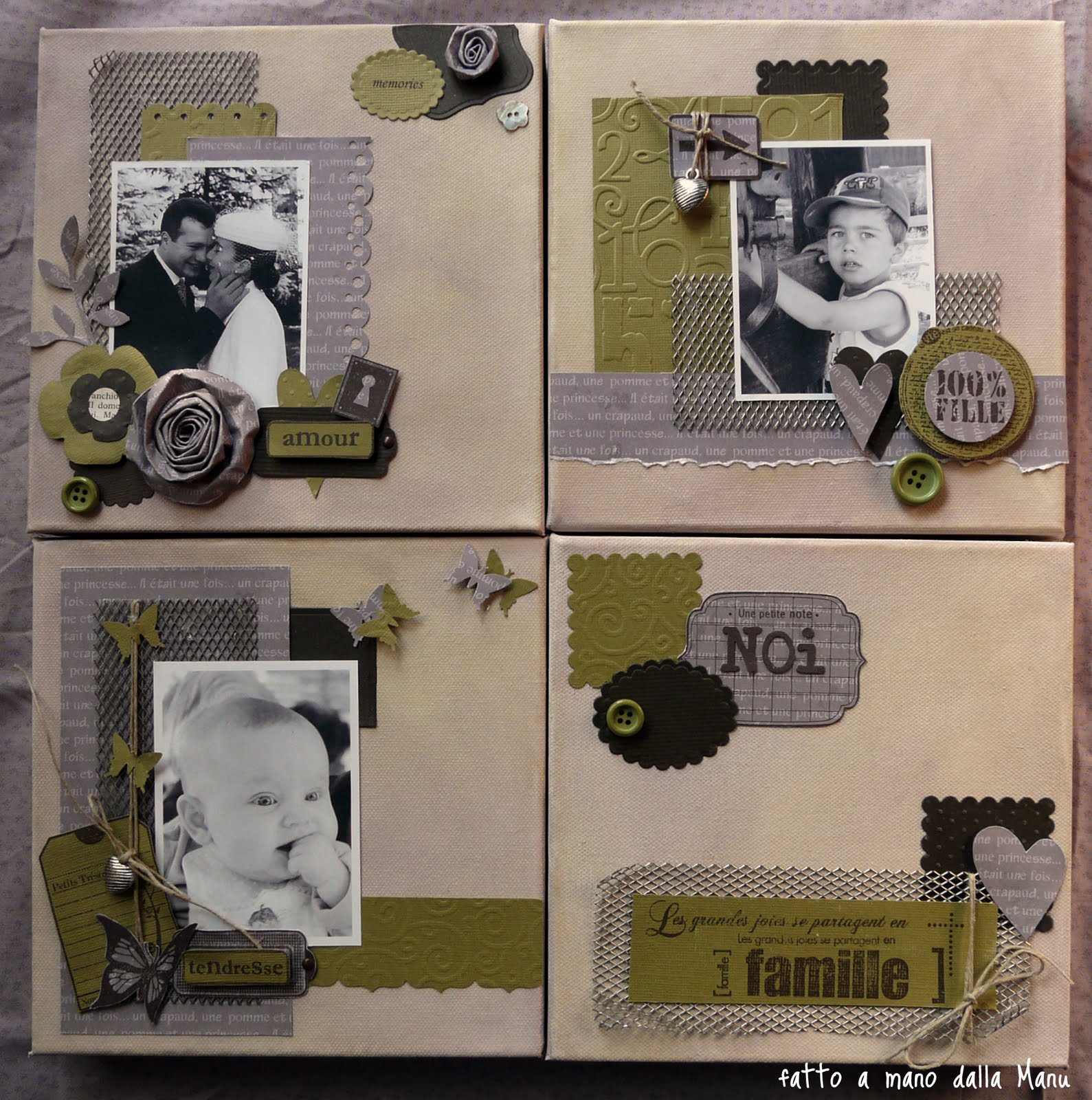 Ecco pronta la base per i miei 4 lay out 20X20! Ho cercato di creare un equilibrio tra le quattro tele, di colore e forme; ho usato anche della rete metallica...isomma mi sono divertita davvero tanto e sono soddisfatta, ma tanto, del risultato! Al di là della sfida, che è stata l'occasione per fare questo lavoro, credo che lo appenderò in casa!