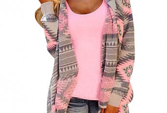 Stylish Women Long Sleeve Geometric Print Open Front Loose Outwear Jacket Coat Top