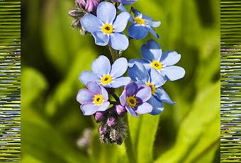 Il non ti scordar di me da aprile a luglio rallegra con le sue corolle azzurre quelle che i botanici definiscono "vegetazioni disturbate", ovvero i luoghi incolti, i margini delle strade di campagna, i campi e le aiuole. Comune in tutta Italia, dalla pianura ai 1400 di quota, il Myosotis arvensis, o non ti scordar di me cresce spesso in compagnia del Cerastium del Senecio e della Veronica. Grigiastra e vellutata per i peli che ricoprono fusti e foglie, questa erbacea annuale appartiene alla famiglia delle Boraginaceae, è alta da 10 a 30 cm. Mostra corolle di pochi millimetri di diametro, leggermente allargate a coppa, con centro giallo e petali blu chiaro, qualche volta bianchi. Simile, ma non uguale il Myosotis arvensis può essere confuso con il non ti scordar di me delle palludi, il cui nome botanico è Myosotis scorpioides, che preferisce però i prati leggermente umidi delle regioni settentrionali e si riconosce per le corolle appena un po più grandi, piatte anzichè concave, cosi come con il non ti scordar di me cangiante Myosotis discolor, i cui fiori, all'inizio color avorio o giallo tenue, diventano rosa chiaro, blu e violetto. Il Myosotis arvensis si propoga facilmente per autodisseminazione e quindi, se non viene racolto per farne romantici mazzolini, può creare in giardino una nuvola celeste di grande freschezza, che non costituira una macchia dall'eccessivo impatto visivo, visto che i suoi fiori sono poco più che coriandoli tra il verde, per avere grandi distese colorate occorre seminare ibridi coltivati con i fiori blu o rosa intenso. Altro gradevole modo per utilizzarlo e piccoli bordi misti, accostato a primule, Geranium, Minulus, a qualche Tradescantia o ancora in piccole strisce ai piedi di siepi di bosso, a creare giochi di altezze e chiaro scuri di grande effetto.