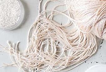 Infilare nel filo da pesca le micro perline fino a raggiungere la lunghezza della treccia di filo fatta all’inizio. Fermare con due nodi agli estremi. Utilizzando i terminali a pressione chiudere insieme gli estremi di treccia e filo di perline da entrambe le parti. Con le pinze applicare il moschettone.Utilizzare il filo eccedente nella parte alta delle nappine per collegarle alla collana, legando con due e tagliando l’eccesso.