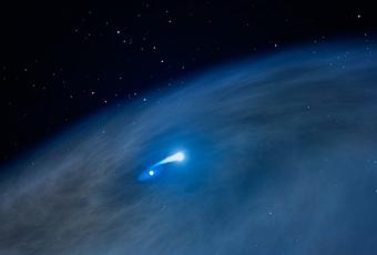 Ma il processo di trasferimento di massa nei sistemi binari non è sempre efficace. Una parte della materia strappata alla stella massiccia può essere espulsa durante il tira e molla gravitazionale tra le stelle, creando un disco attorno al sistema binario. «Questo è quello che pensiamo stia accadendo a Nasty 1», ha detto Mauerhan. “Pensiamo che ci sia una stella Wolf-Rayet sepolta all’interno della nebulosa, e pensiamo che la nebulosa sia stata creato da questo processo di trasferimento di massa. Questo tipo di cannibalismo stellare “sciatto” rende il soprannome di Nasty 1 piuttosto adatto».