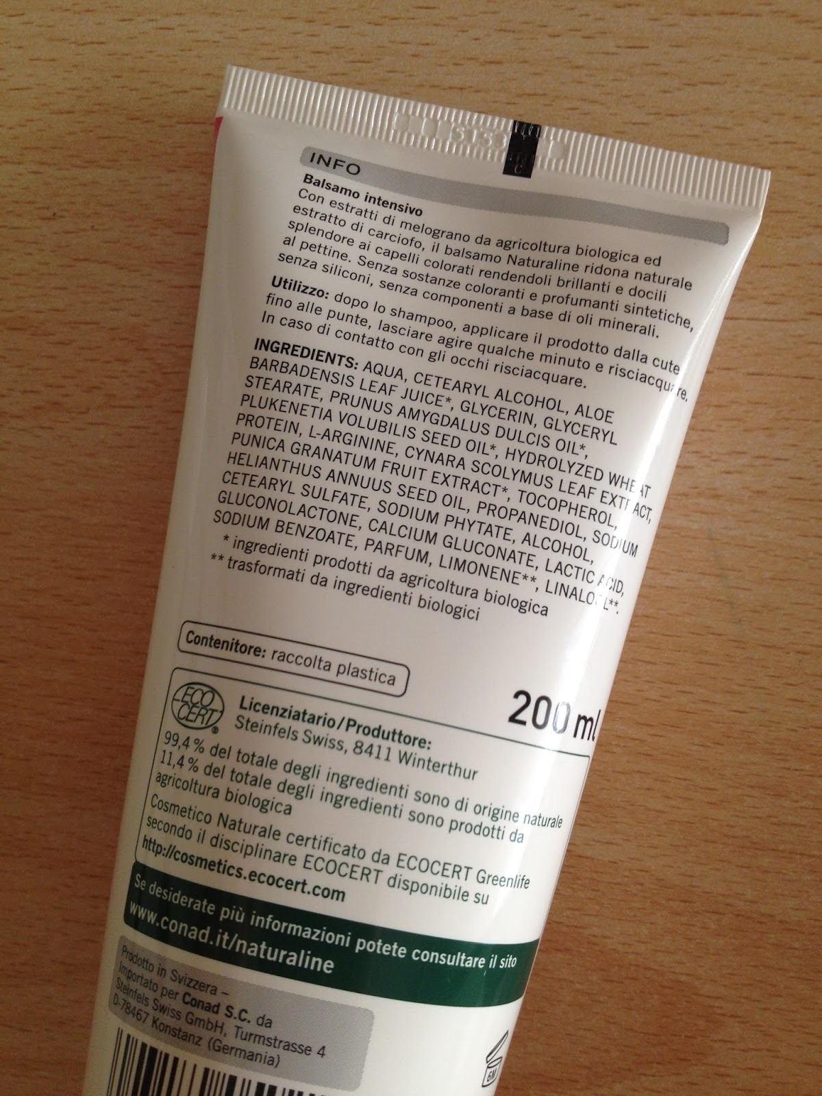 Il primo che vedete a sinistra è il Balsamo al melograno e carciofo, per capelli colorati, da me scelto semplicemente perchè, dall'inci, mi era sembrato forse più ricco dell'altro balsamo disponibile.