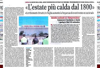 Sulla Gazzetta del Mezzogiorno di oggi, a pag. 2, alcune riflessioni del Geologo Antonello Fiore sul dissesto idrogeologico in Puglia. Secondo Fiore è fondamentale il valore culturale e sociale della promozione dell'autoprotezione dai rischi geologici. Principio al quale tutti i geologi, indipendentemente dal ruolo che svolgono (professionisti, funzionari pubblici, accademici, insegnati, dipendenti di ditte private, senatori), devono concorrere a promuovere.
