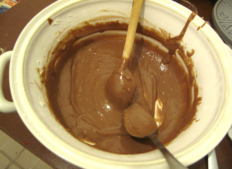 • aggiungere cannella, e l'olio, poi pian piano il vino. Deve essere cremosa ma densa. Regolate liquidi e farine di modo che sia giusta.