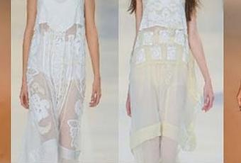 Colori da etoile, nuance delicate, impalpabili, che avvolgono gli abiti con una morbidezza quasi sussurata, chiffon, sete, garze in cotone, balze, pizzi francesi, un'inaspettato ritorno del macramè, donano alla donna un'attitudine retrò chic. Anche i capi più minimali e rigorosi di questa P/E 2011 si arrendono di fronte alla femminilità cromaticadi una nuvola a tinte sort. L'effimero prende forma.