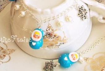 As I told you, the matryoshkas are handmade out of fimo (polymer clay) and handpainted, assembled on bracelets and necklaces with metal charms and plastic pearls.
