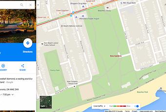 Il nuovo design rende più semplice accedere in Street View, basta fare clic sulla miniatura grande che appare nel menu (non più trascinando quella piccola persona gialla), e offre un layout molto più pulito, in generale, con i pulsanti di scelta rapida per le direzioni, il salvataggio, la condivisione e la ricerca dei punti di interesse nelle vicinanze.