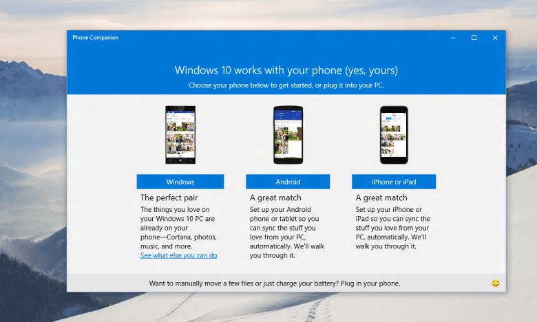 Il nuovo sistema operativo di Windows rafforza sempre più la compatibilità con altri sistemi operativi, il rilascio della nuova APP infatti Phone Companion serve proprio a far comunicare i sistemi fra di loro in maniera ottimale,