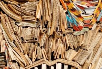 Ecco le sculture di carta e giornali dell’artista newyorkese Nick Georgiou, recentemente esposte al tempio della musica e dell’arte di Tucson, Arizona. Altre immagini qui.