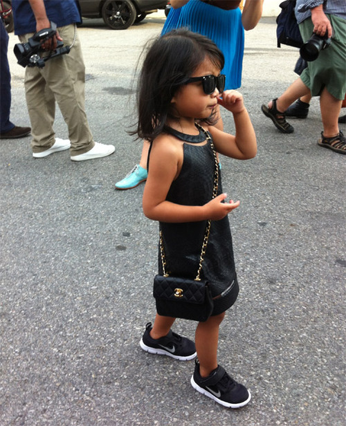 “NEW YORK’S NEXT FASHIONISTA - Now three years old, Alexander Wang’s niece Aila Wang has progressed from leather pinafore dresses, to the halterneck version, which she accessorised with Wintour-esque shades and a black Chanel bag. Oh Suri, you have much to learn.”