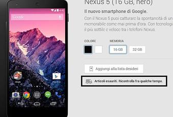 Il nuovo Google Phone va nuovamente a ruba, specialmente la versione Black da 16B. Dopo essere andato ad esaurimento scorte il giorno 4 Novembre, a partire da oggi sarà impossibile acquistare la variante nera del Nexus 5 16GB.