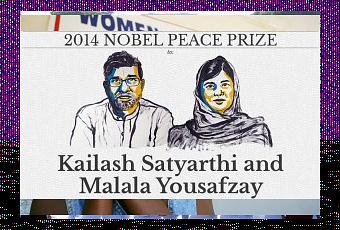 Il Nobel per la Pace 2014 assegnato congiuntamente all’attivista indiano per i diritti dei bambini Kailash Satyarthi e a Malala Yousafzay. La ragazza pachistana Malala Yousafzay, che due anni fa fu ferita gravemente dai talebani per la sua lotta a favore dell’istruzione femminile. Il 60enne Satyarthi e la 17enne Malala sono stati premiati “per la loro battaglia contro la repressione dei bambini e dei giovani e per il diritto di tutti i bambini all’educazione”.