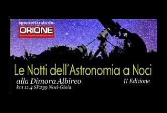 “Le Notti dell’Astronomia”, avranno come cornice la Dimora Albireo nella campagna di Noci (Ba) a pochi chilometri dal mare Ionio e Adriatico. Nel corso della manifestazione saranno proposte letture del cielo, spettacoli multimediali, degustazioni enogastronomiche, mostre e corsi tenuti da esperti.