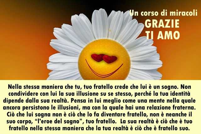 sogno”, tuo fratello. La sua realtà è ciò che è tuo fratello nella stessa maniera che la tua realtà è ciò che è fratello suo.La tua mente e la sua sono unite nella