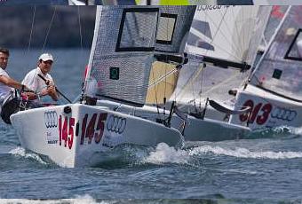 Malcesine 2 luglio – Prima giornata di regate della quarta tappa Audi Sailing Series Melges 20 ospitate questo week end dalla Fraglia Vela Malcesine. La prima manche è stata corsa con vento da sud che si è attestato sui 10/11 nodi ed è stata vinta da Jingle 3 di Stefano Sacchi con Francesco Bianchi alla tattica seguito da Audi Fratelli Giacomel di Guido Miani e Gabriele Benussi seguiti da Peccerè di Mirko De Falco e Piero Vigo. Stesso scenario e stesso vento per la seconda prova vinta da Reggini Sailing Team di Francesco Farneti e Branko Brcin seguito da Audi Fratelli Giacomel e Turnover con al timone Marco Perazzo e Pietro Sibello alla tattica. Durante la terza prova il vento sale fino a 15 nodi e premia il team americano Bacio di Michael Kiss con alla tattica Chris Rast seguito da Turnover e da Sei Tu 20 di Marco Morina con alla chiamata Alberto Bolzan. Il vento è protagonista anche della quarta prova quando, causa un temporale, gira a nord e cala drasticamente d’intensità tanto da costringere il comitato di regata a fermare la regata al giro della seconda bolina di Reggini Sailing Team che fino a quel momento inseguiva Sei Tu 20, mentre terzo è Camay di Lauro Bonora con alla tattica Carlo Fracassoli. La costanza dei risultati delle quattro manche ha premiato Notaro Sailing Team di Luca Domenici con Andrea Fornaro alla tattica, seguito da Turnover a pari punti di Camay.Al rientro a terra i regatanti hanno trovato una piacevole sorpresa, il Presidente della Federazione Italiana Vela Carlo Croce in visita di cortesia alla Fraglia Vela Malcesine. Solo in prima serata la testa della classifica è stata definita al termine delle proteste. Bacio per una protesta di stazza è stato penalizzato di 9 punti che l’hanno fatto passare dal primo della classifica generale provvisoria alla quarta posizione e l’assegnazione di 12 punti alla richiesta di riparazione di Jingle 3 costretto al ritiro durate la seconda prova per una collisione.Domani il comitato di regata darà il segnale d’avviso alle 11:00 con l’intenzione di fare due prove che permetteranno di far usufruire ai team dello scarto del peggior risultato.