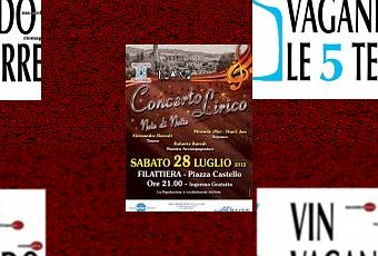 La Pro Loco Filattiera e l’associazione culturale Kuaikò organizzano Sabato 28 luglio 2012 alle ore 21.00 in Piazza Castello nel centro storico di Filattiera un Concerto Lirico.