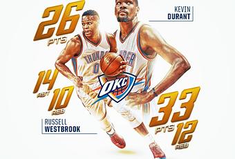 Sono Kevin Durant e Russell Westbrook a guidare i Thunder al successo contro i Rockets. Per il primo arriva una doppia-doppia da 33 punti e 12 rimbalzi, per la 35esima partita consecutiva oltre i 20 punti segnati. Per il secondo, invece, c’è una tripla-doppia da 26 punti, 10 rimbalzi e 14 assist, la 17esima nelle ultime due stagioni. E’ la decima quest’anno con almeno 25 punti segnati, il resto della NBA combinato arriva allo stesso numero.