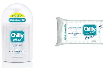 Un’altra novità Chilly è la nuova formulazione di Chilly Gel, un prodotto arricchito con mentolo naturale per una maggiore sensazione di freschezza e protezione a lungo. Anche Chilly Gel è disponibile sotto forma di salviette, ideali per le donne che passano molto tempo fuori casa, ma hanno bisogno di sentirsi a proprio agio intimamente.
