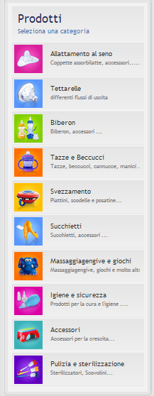 Nuby offre una vasta gamma di prodotti,suddivisi in varie categorie: