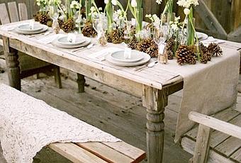 UN VASO AL CENTRO DELLA TAVOLA? No, tanti in fila! Pigne, gelsomini, tulipani bianchi...sbizzarritevi! foto via www.pinterest.com