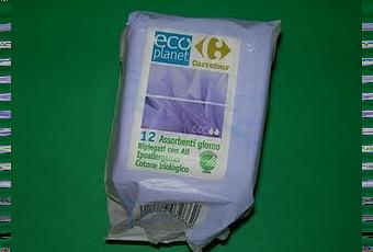 Per sentirsi sempre fresche, sicure ed in armonia con la natura, nasce la linea Assorbenza Ecologica Carrefour Ecoplanet, una gamma composta da assorbenti giorno, notte e proteggi slip in materiale ecologico e biodegradabile. Per la tua pelle, tutta la morbidezza del cotone biologico, una fibra naturale delicata e dall'elevato potere assorbente che Carrefour ha selezionato per te da coltivazioni biologiche che nn impiegano pesticidi chimici. Hai fatto una scelta responsabile e rispettosa della tua salute e dell'ambiente.I prodotti recanti il logo di NordicEcolabel sono testati da laboratori indipendenti e soddisfano precisi criteri di produzione mirati a ridurre l'impatto ambientale. La tua scelta è un piccolo passo verso un ambiente migliore.