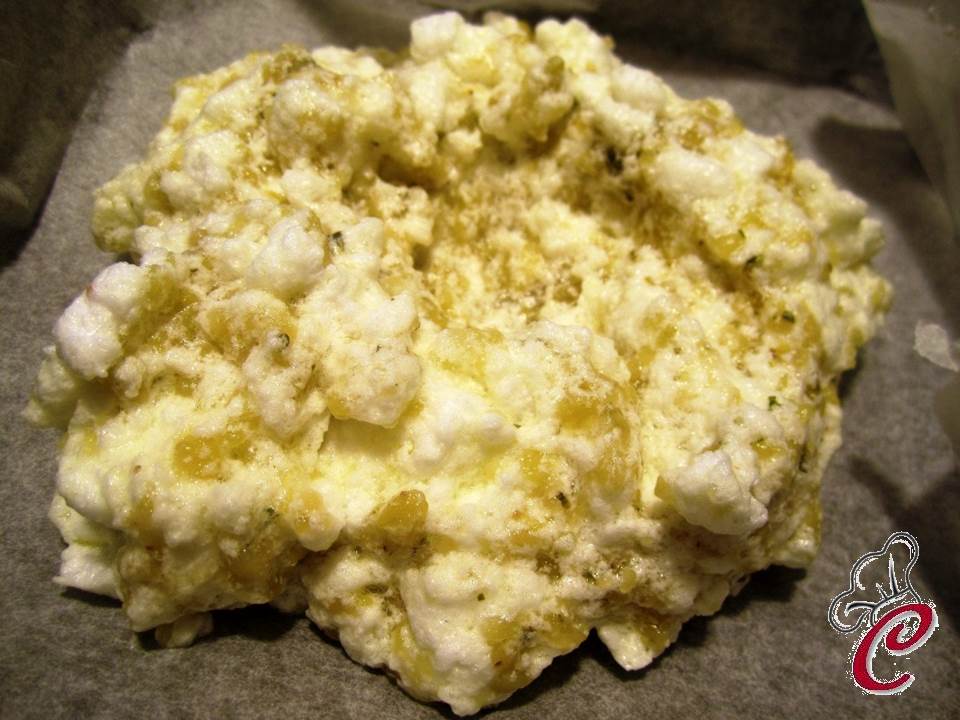 Quando sarà tiepida estraete la polpa, aiutandovi con un cucchiaio, e tritatela, con una mezzaluna, ottenendo una crema piuttosto fine.Rompete l'uovo e separate il tuorlo dall'albume: il primo tenetelo da parte (sel suo guscio si materrà umido ed eviterete di romperlo) e il secondo trasferitelo in una ciotola, dove lo monterete a neve con un pizzico di sale. Fate in modo che sia una neve ben ferma, per cui abbiate pazienza e lavorate con la frusta per diversi minuti. A questo punto iniziate ad accendere il forno, portandolo alla temperatura di 200°.