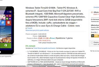 Offerta Amazon Prime Day: tablet Windows 8.1 a 112 euro scontato del 51%