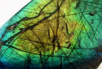 LABRADORITE Caratteristiche: sicoalluminio di sodio e calcio; sistema triclino grandi mase compatte e granulri, rari i cristalli tabulari; è spesso molto iridescente, con riflessi metallici (labradorescenza). Proprietà: combatte la gelosia e assorbe le negatività Disturbi: rafforza il corpo e porta beneficio ai dolori di stomaco Associazione con i chakra: sesto