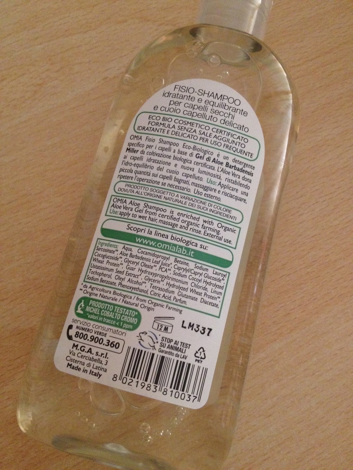 Il Fisio Shampoo Omia all'Aloe Vera è contenuto in un semplice flacone di plastica trasparente, senza inutili confezioni esterne. Il formato è da 250ml e ha un costo di circa 4€, si trova facilmente nella grande distribuzione ed è certificato Icea Eco Bio Cosmesi.
