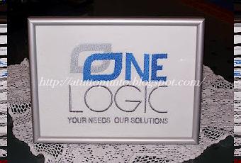 Lui ha una sua azienda e così, siccome all'epoca stava ancora sistemando l'ufficio, ho pensato di ricamargli un quadretto. Ho chiesto a mio marito di farsi dare l'immagine originale del suo logo senza fargli capire niente e dopo prove, prove, ma proprio tante prove, ho fatto la punchatura e ho ricamato sia un quadretto che due magliette, una per lui e una per mio marito.