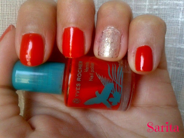 (mi scuso per la pessima qualità delle foto ma sono state fatte con il cellulare (vecchio dei tempi della guerra) perchè ero fuori casa e non avevo con me la mia amata reflex)La stesura di questo smalto è abbastanza buona e scorrevole. Il mio consiglio che vi do per rendere il colore ancora più intenso è di fare due applicazioni. Per quanto riguarda lo smalto Oro con microglitter di Ciatè non ho moltissimo da dire perchè ha un'ottima stesura ed è perfetto fin dalla prima passata, ovviamente se volete più glitter vi consiglio,anche in questo caso, di fare due passate. Durata manicure: ahimè lo smalto arancio/rosso è durato al massimo 3/4 giorni, premetto che io in casa lavo, pulisco, etc.., quindi forse da uno smalto di Yves Rocher dovrei essere abbastanza soddisfatta della sua durata. Per quanto riguarda l'oro di Ciatè come vi dicevo sopra ha una durata SPETTACOLARE! A differenza dell'altro era impeccabile, nessuna sceggiatura o sbeccatura ai lati e per toglierlo ci ho messo un pò, questo è indice della sua alta durata.Perle di saggezza per una manicure perfetta: andate ad applicare uno smalto che ha una bassa durata e che tende a sbeccarsi molto facilmente,dopo aver svolto le classiche faccende casalinghe e dopo vari ed eventuali shampoo e docce. In questo modo, forse, riuscirete a far durare più a lungo questo smalto sfigatello.Carissime amiche spero di esservi stata d'aiuto, nel mio piccolo, anche oggi.Vi auguro una buona serata, al prossimo post.BesitosSarita