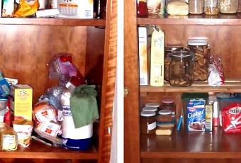 Scomparto di destra: alimenti e biancheria per la tavola.