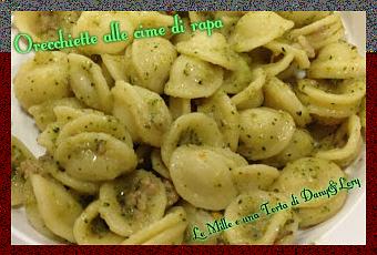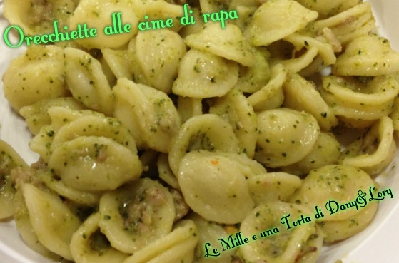 Lavare le cime di rape, lessarle e conservare l'acqua di cottura. In una padella soffriggere l'aglio con l'olio, quando questo imbiondirà toglierlo e aggiungere le acciughe. Unire le cime di rapa e cuocere per 5 minuti. Intanto portare ad ebollizione l'acqua di cottura delle cime di rapa e cuocervi le orecchiette. Scolarle al dente e condirle con il sugo ottenuto precedentemente. Servire caldo con il parmigiano.