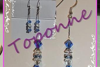 Qualche giorno fa la mia zietta m'ha chiesto un paio di orecchini da abbinare ad una collana di swarovski che le avevamo regalato. Così ho buttato giù due semplici modelli e dei due lei ha scelto quello più lineare, quello fatto in un minuto (non credevo)! Comunque, anche se non mi sono costati molto tempo, devo dire che non mi dispiacciono affatto!