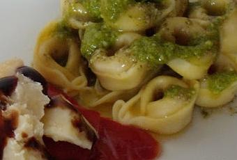 Tortellini con pesto di menta accompagnati da peperoni e parmigiano reggiano con glassa Ingredienti